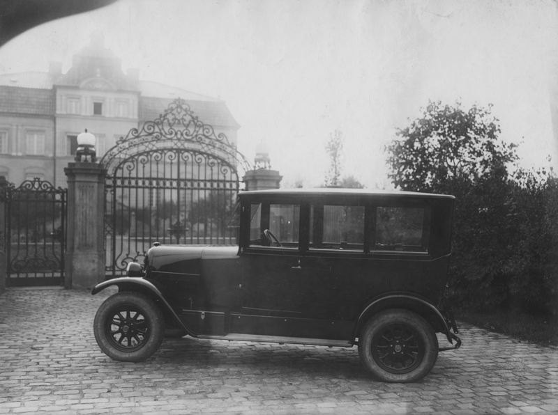 • Personbil vid palatsliknande byggnad. (Ribersborgsvägen ?)