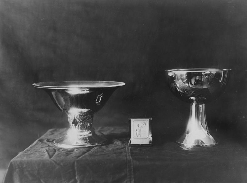 • 2 pokaler och plakett - AMI:s vandringspriser (?) intressant reflex på en pokal.