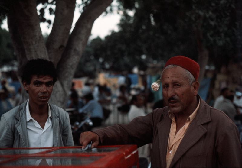 • Två tunisiska män, den ene har en röd fez på huvudet.