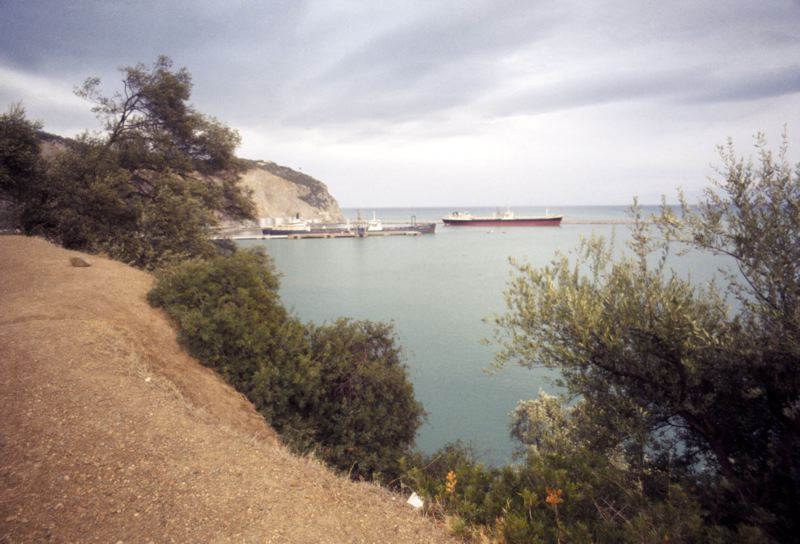 • Hamn i Bejaia, viktig oljehamn på bilden syns några oljecisterner och stora fartyg.