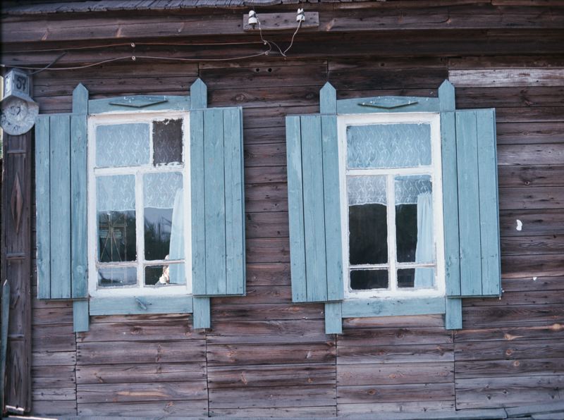 • Byggnadsdetalj, utsirade fönsterfoder och överstycken.