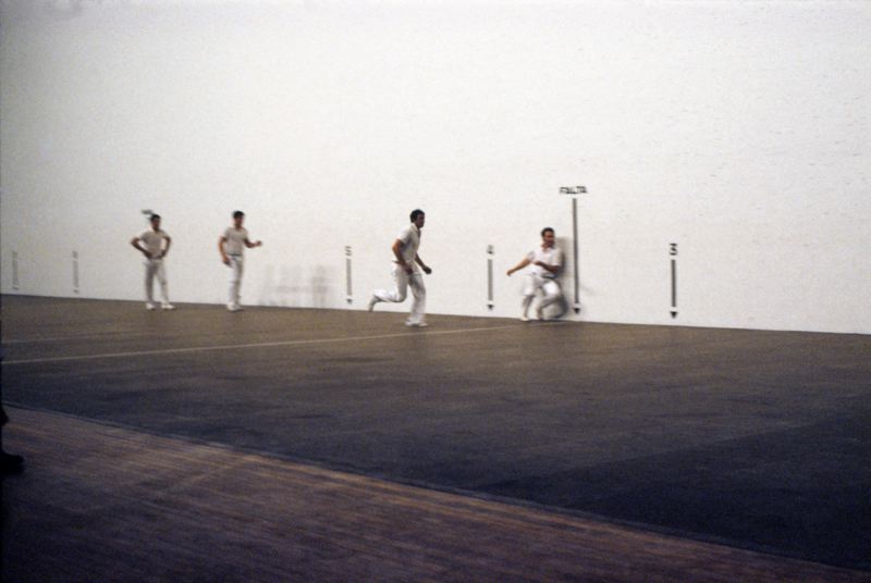 • Pelota är en bansport som spelas med en gummiboll som spelas med handen, racket, slagträ eller med avlånga korgliknande redskap mot en vägg. Den nuvarande varianten anses ha utvecklats från real tennis. Pågående match.