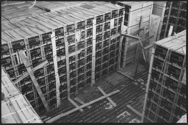 • Lossning av frukt på båten Malayan Victory, frukten låg i lådor med kartonger.