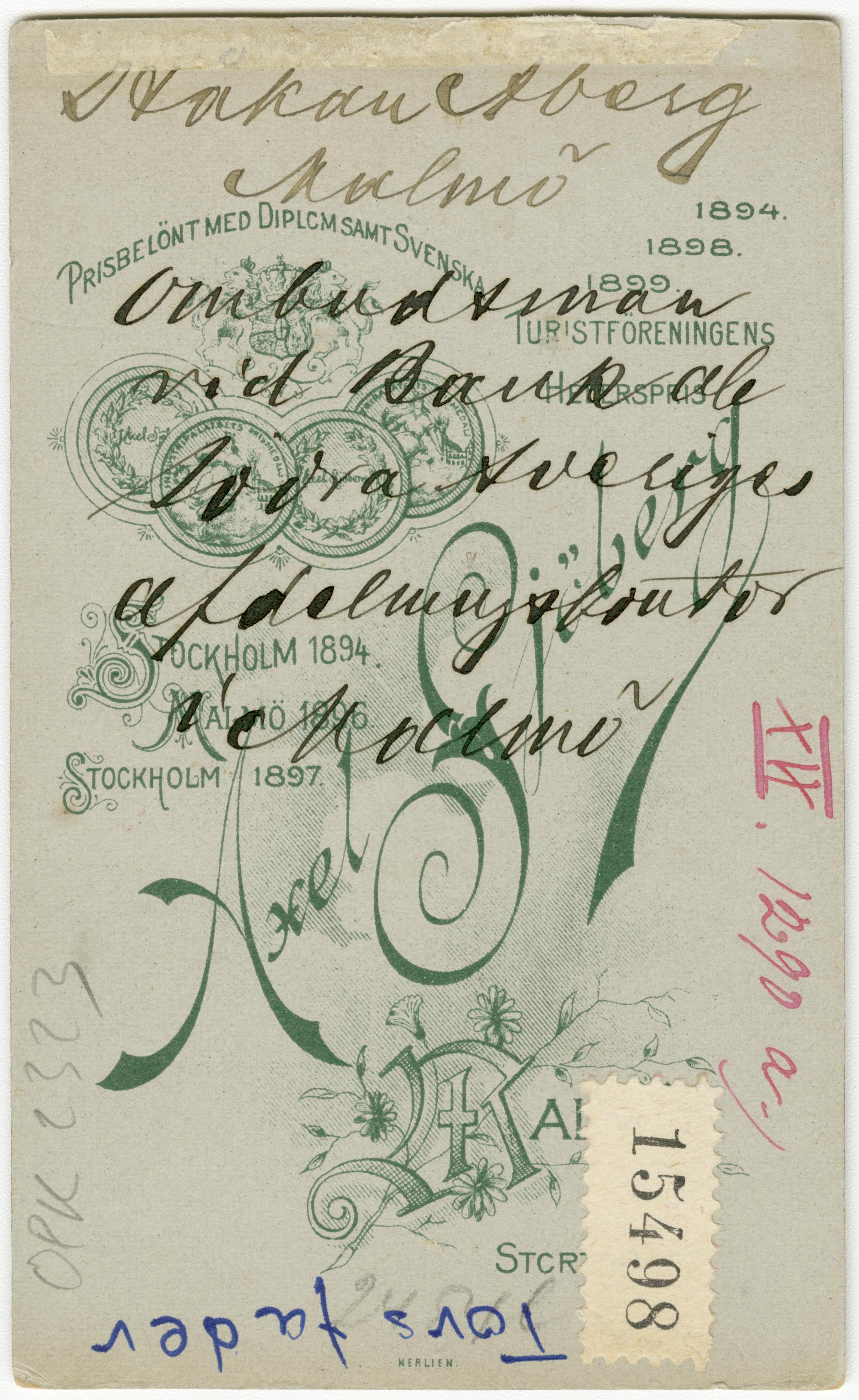 Porträtt av tullfiskal och häradshövding Håkan Åberg, far till givaren Tor Åberg. Handskrivet på fotografiets baksida: "ombudsman vid Bank ab Södra Sveriges afdelningskontor i Malmö".
