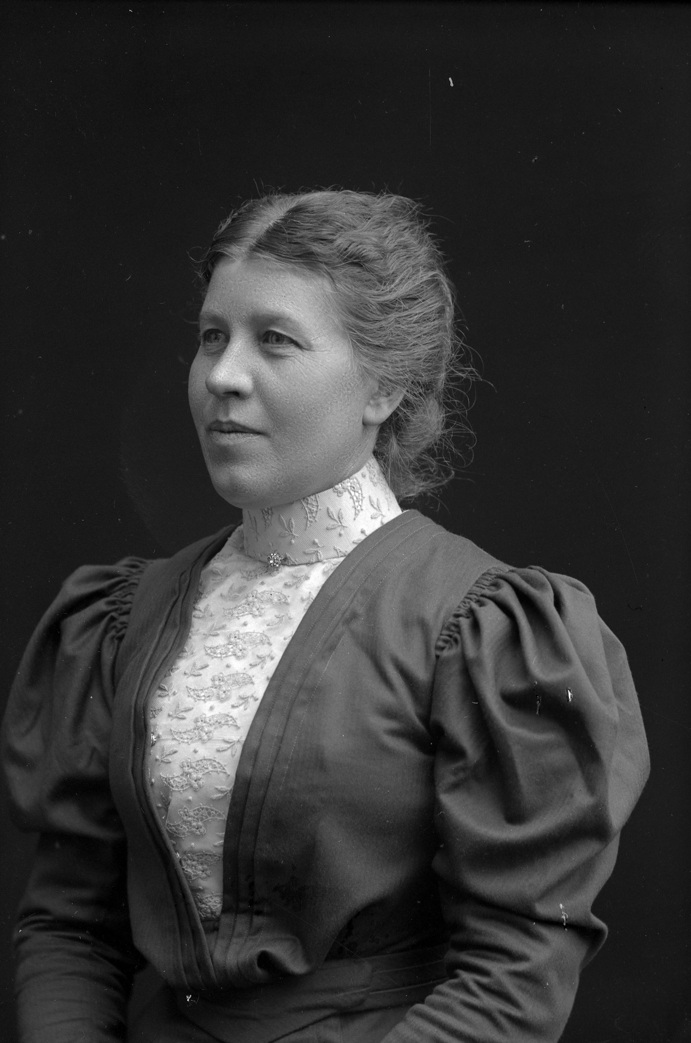 • Porträtt i halvfigur av lärarinnan Bengta Blücker.