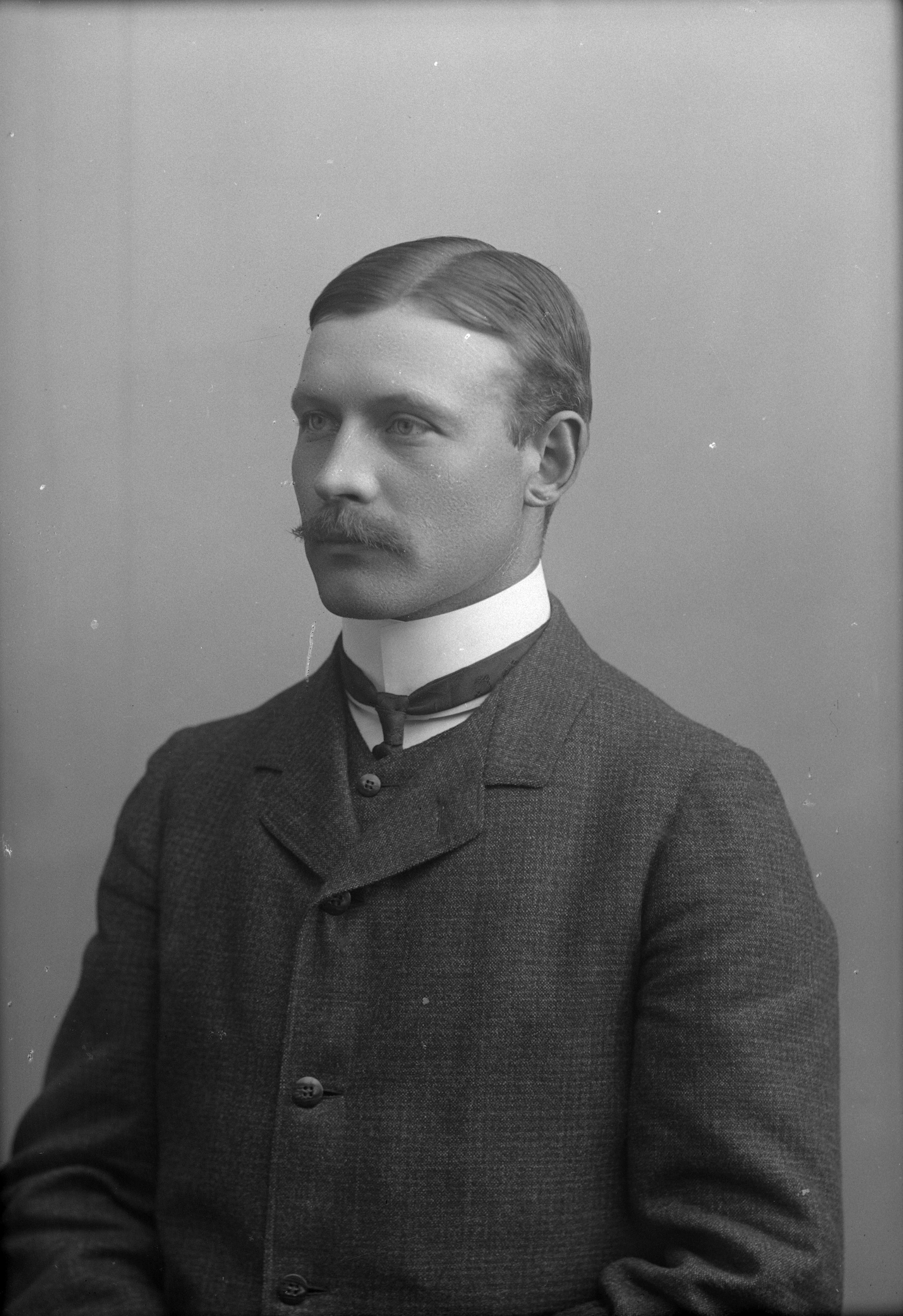 • Porträtt i halvfigur av Jöns Nilsson, länsassistent på Hvilan.