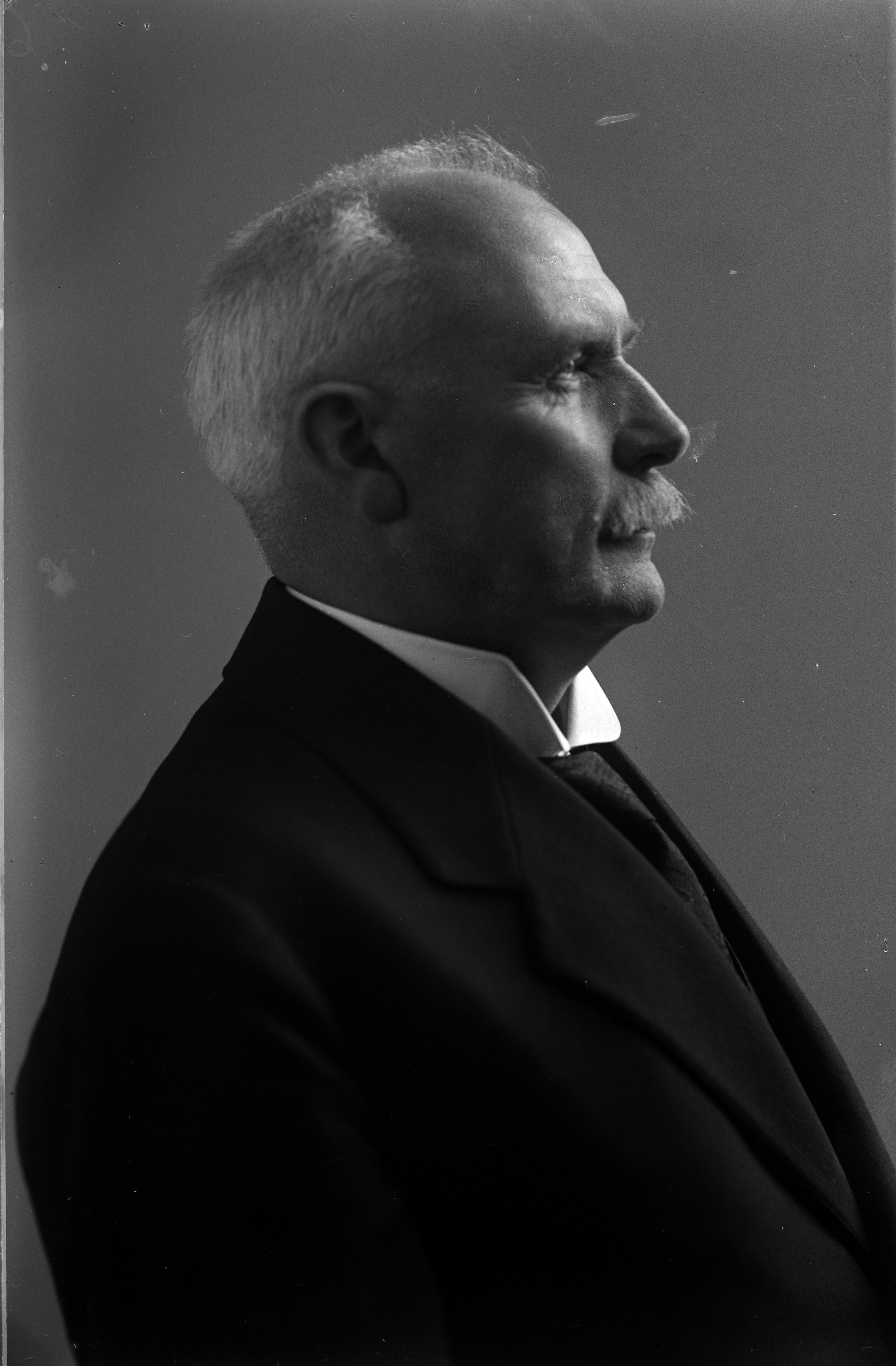 • Porträtt i halvfigur, profil, av stadsfiskal Axel Gottfrid Fagerström.