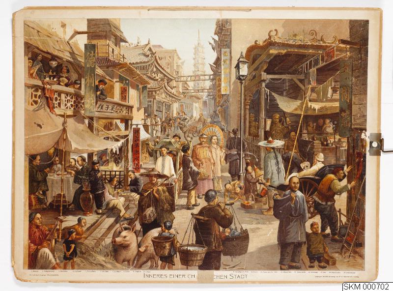 plansch, skolplansch, Inneres einer chinesischen stadt
