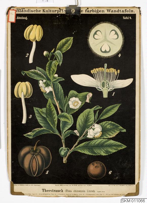 Plansch: Theestrauch. Färg. Övre metallhörn saknas.Verlag Wieweg & Sohn, Braunschweig.Konstnär: C. Bollmann.