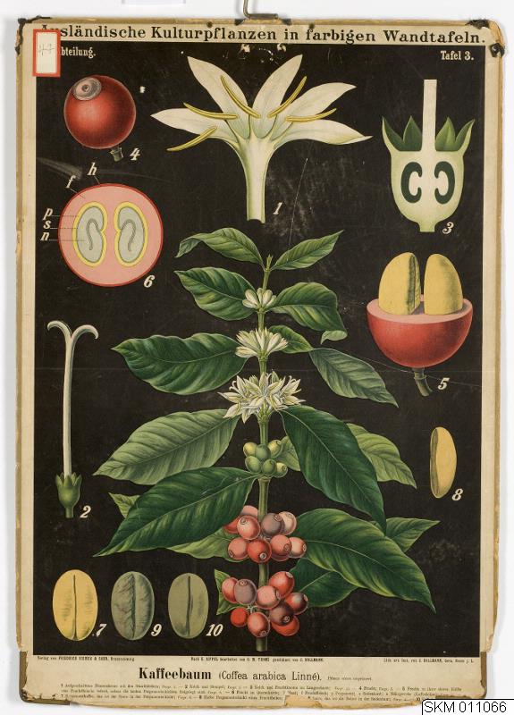 Plansch: Kaffeebaum Färg. Övre metallhörn saknas.Verlag Wieweg & Sohn, Braunschweig.Konstnär: C. Bollmann.