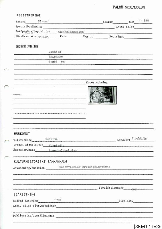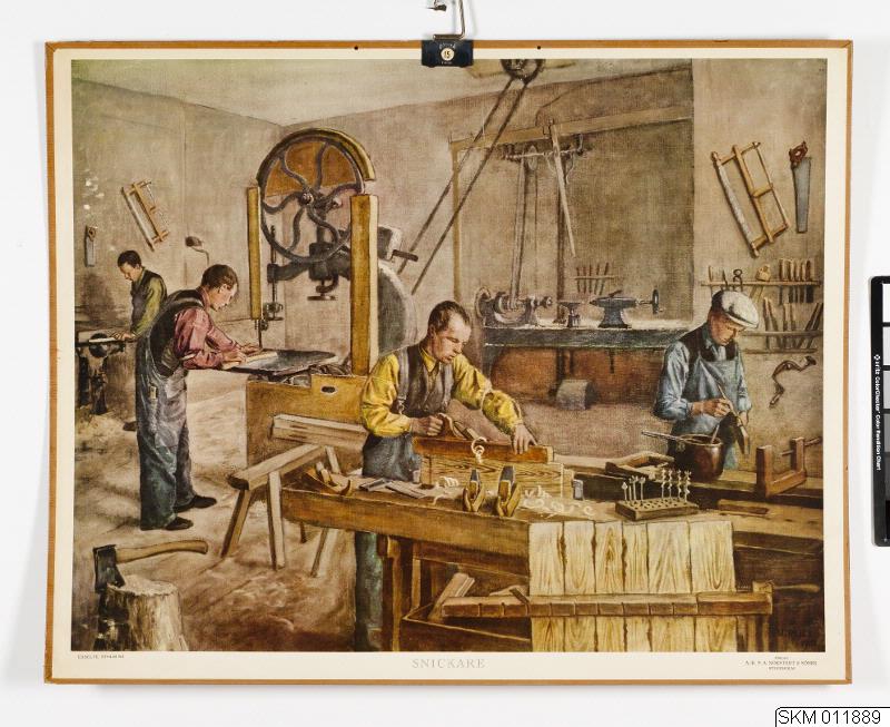 Plansch: Snickare.Konstnär: Urban Rejle 1938.Förlag. A.-B. P. A. Norstedt & Söner, Stockholm.Esselte, Sthlm 52.