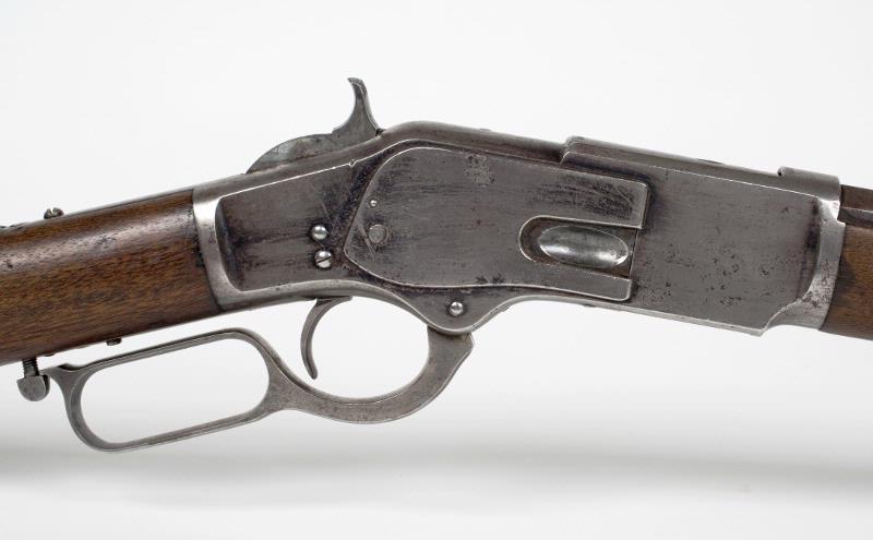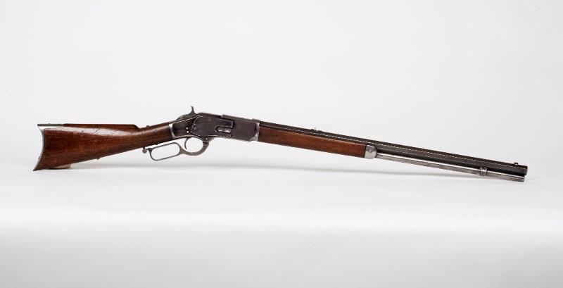 Repetergevär med hävstångsmekanism. Bakladdat. Oktogon slätborrad pipa. Helstock. Patrongömma i kolven. Tillgänglig genom lucka i bakplåten. Pipan är märkt: WINCHESTER'S-REPEATING ARMS. NEW HAVEN. CT. KINGS-IMPROVEMENT-PATENTED-MARCH 29. 1866. OCTOBER 16. 1860. Vapennummer 11971. D v s den senare serien av första modellen. m/1873 konstruktion Winchester.