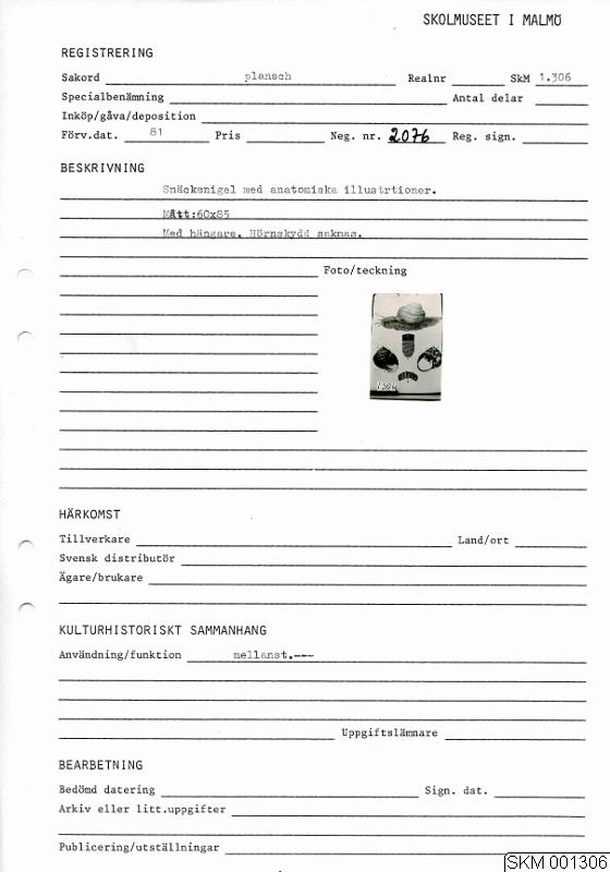 Plansch, snäcksnigel med anatomiska illustrationer. Med hängare, hörnskydd saknas.Mått: 60x85 cm.