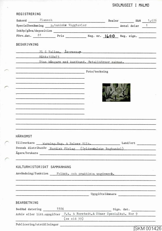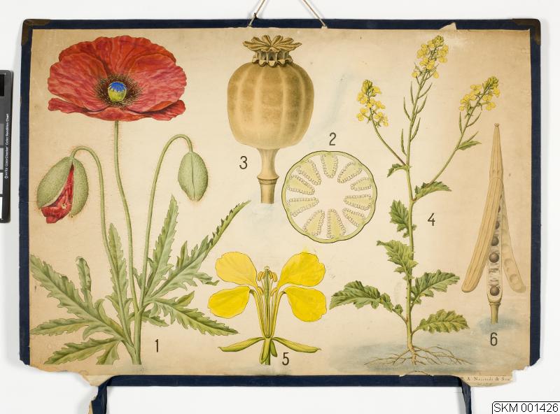 • Skolplansch. Pl. 6 Vallmo, åkersenap. Utan hängare med kantband. Hörnor av metall saknas.