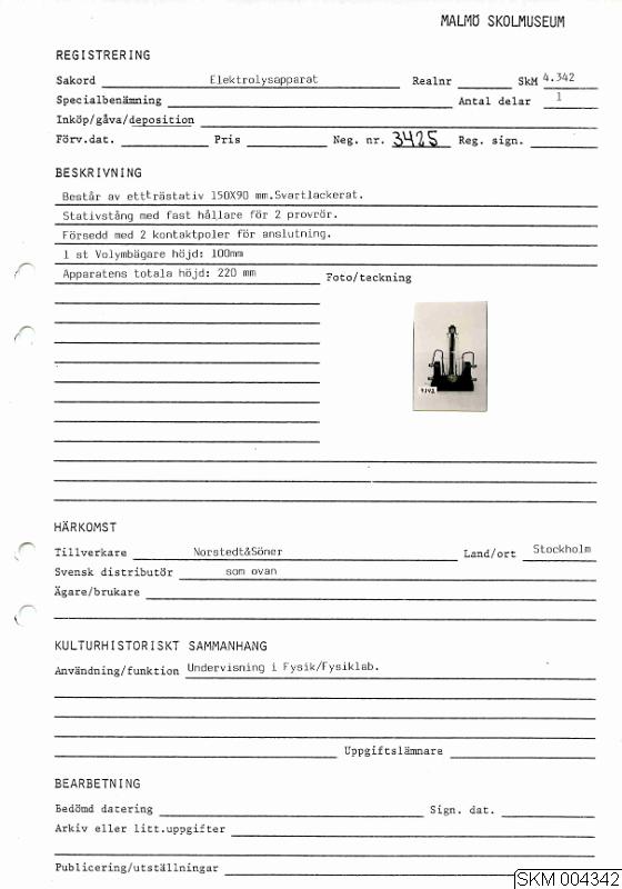 • Elektrolysapparat bestående av ett trästativ och stativstång med fast hållare för två provrör.Försedd med två kontaktpoler för anslutning.