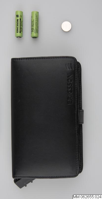 Handdator med trycksskärm och pekpenna samt QWERTY tangentbord. Monochrome 6,6 tum skärm. Adapterkabel för sammankoppling med telefon. Medföljer läderfodral med kardborrfäste och fack för kredit- och visitkort. Plats för två laddninggsbara NiMh batterier med AA storlek. Ericsson BKB 193115 1100mAh. Made in Japan.