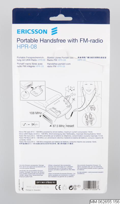 handsfree, radio, Ericsson, hörlur, Ericsson handsfree med radio HPR-08, HPR-08, DPY 901078/02R1