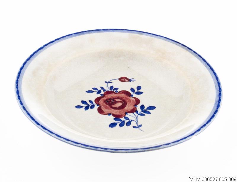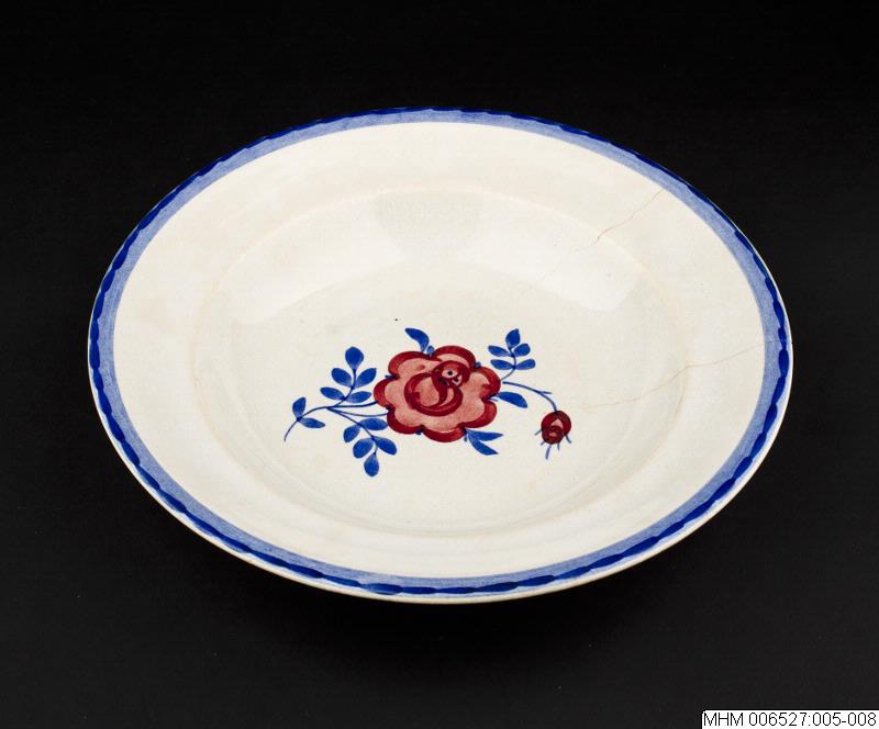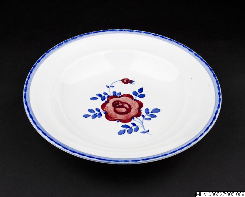 • Djupa tallrikar från Rörstrand. Vita med blå kant och en blomma i mitten.