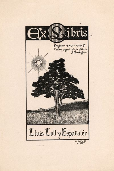 Svart tryck på vitt papper. Landskap.Signatur och text: 25 Setembre 1904