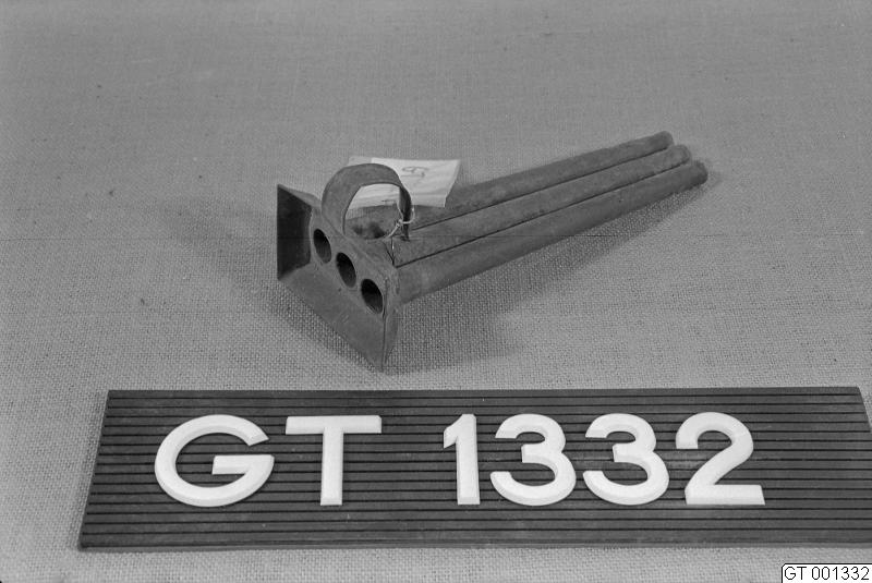 • Ljusform av plåt. Tre stycken sammankopplade, avlånga, rör med platta