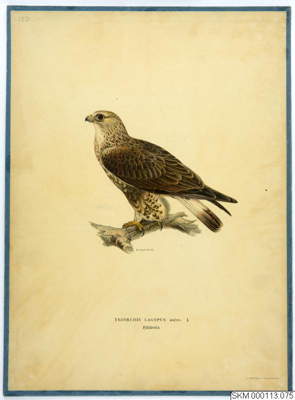 Tretton stycken papplådor med allt som allt 361 planscher över Nordens fåglar.Fjällvråk. Avbildad i 1/3 storlek.
