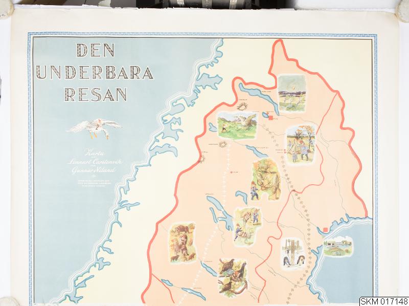 • Karta över norra Sverige. Utformad efter Selma Lagerlöfs bok "Nils Holgerssons underbara resa genom Sverige.