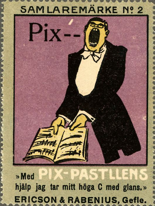 • SAMLAREMÄRKE No. 2 PIX----MED PIX PASTILLENS HJÄLP JAG TAR MITT HÖGA C MED GLANS. ERICSON & RABENIUS, GEFLE.