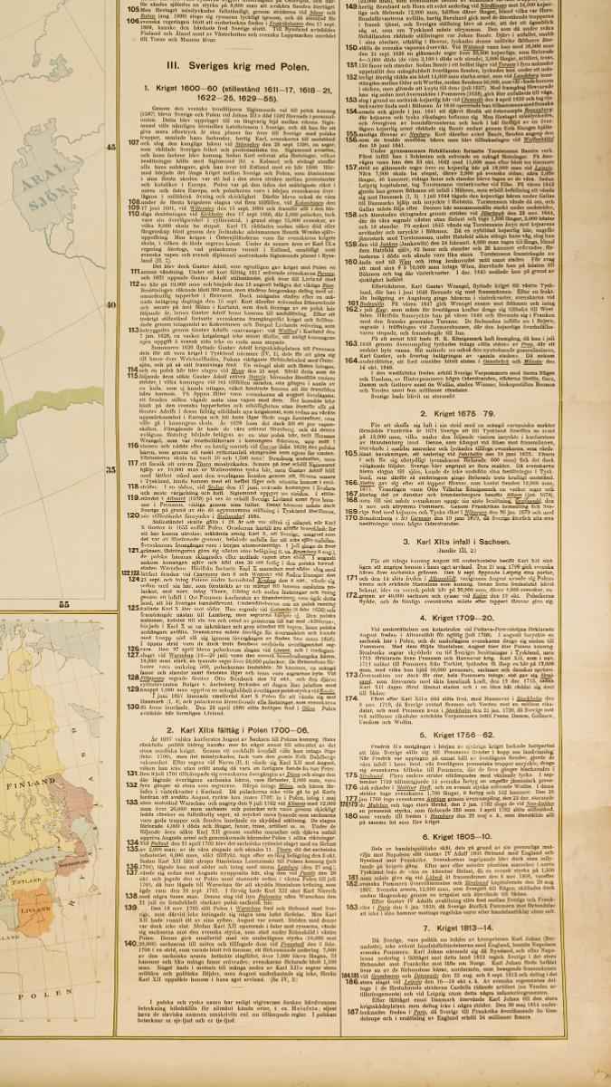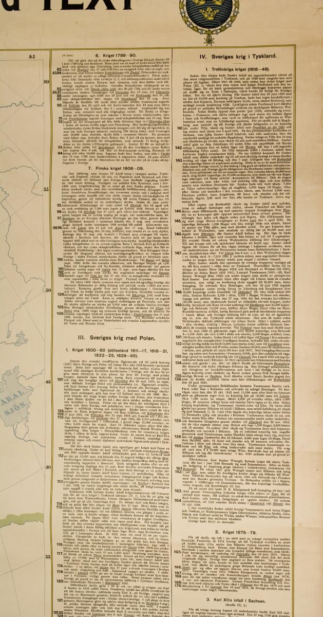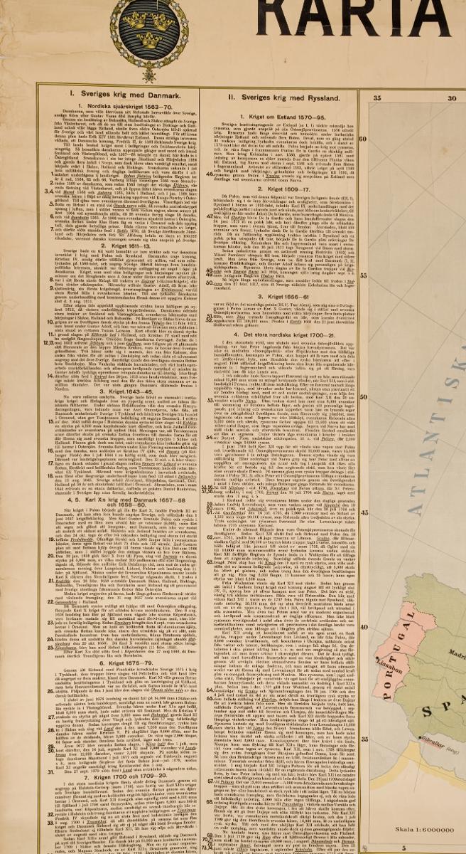 krigskarta, karta, väggkarta, Karta till Sveriges krigshistoria med text 1560-1814