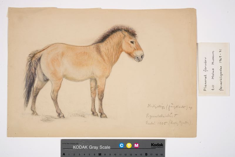 • Målning i färgkrita av Olof Gylling Motiv: przewalskihäst. Målad 1905, Zoolog. Garten Berlin 1905.