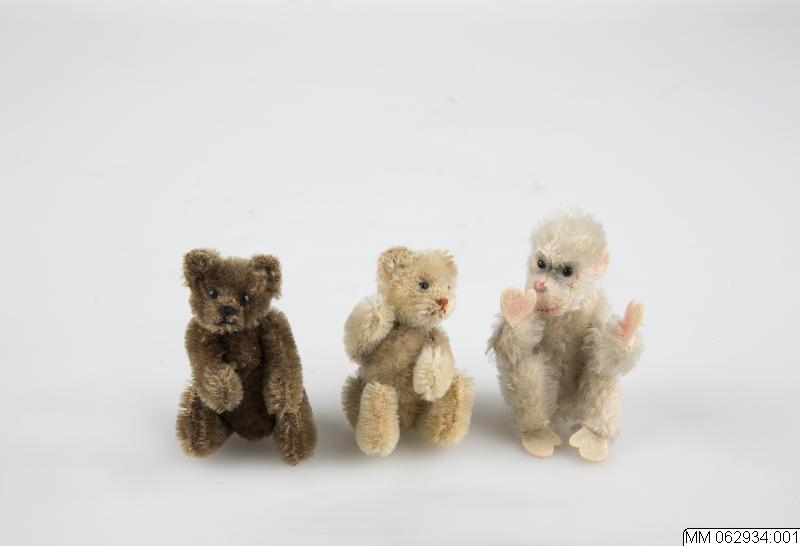 • 1 stycken beige apa i polyesterpäls med ögon av glas.