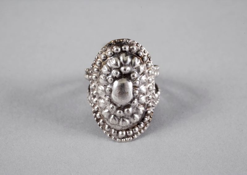 Ring, silver, prässad dekor.Stämpel: IAFöremål avritat på katalogkort.