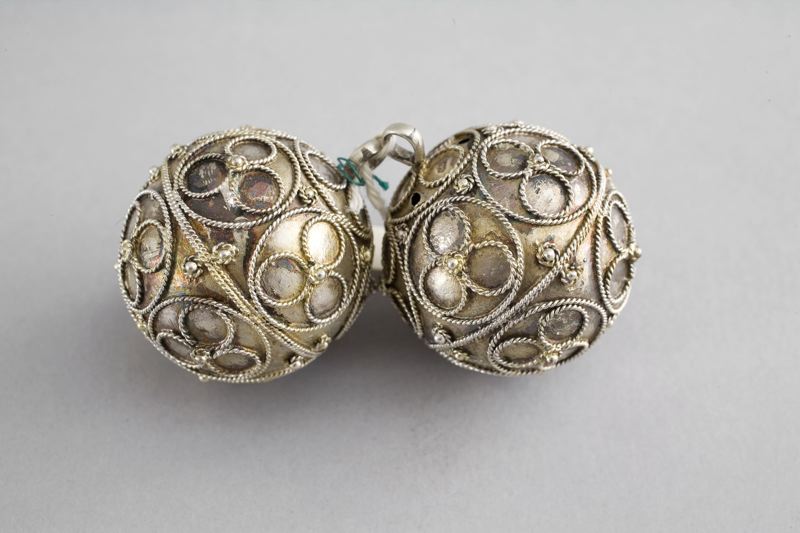 Armknappar, 1 par, silver, förgyllt, filigran.Stämplar: Mästarstämpel: IM.