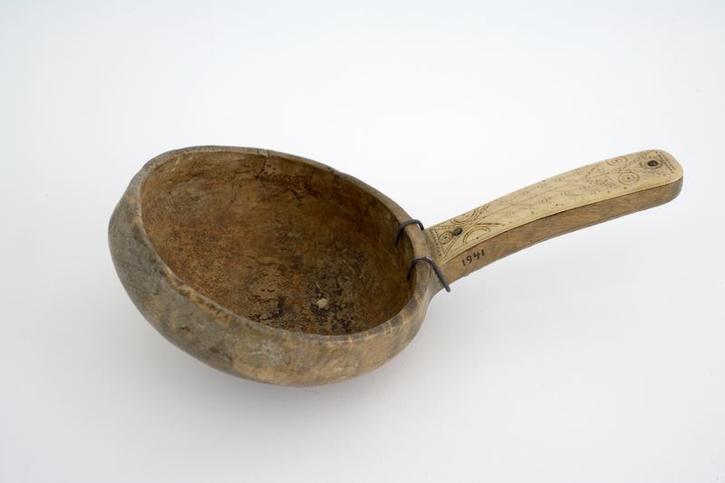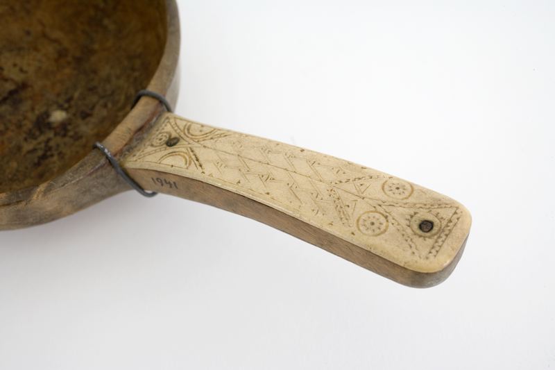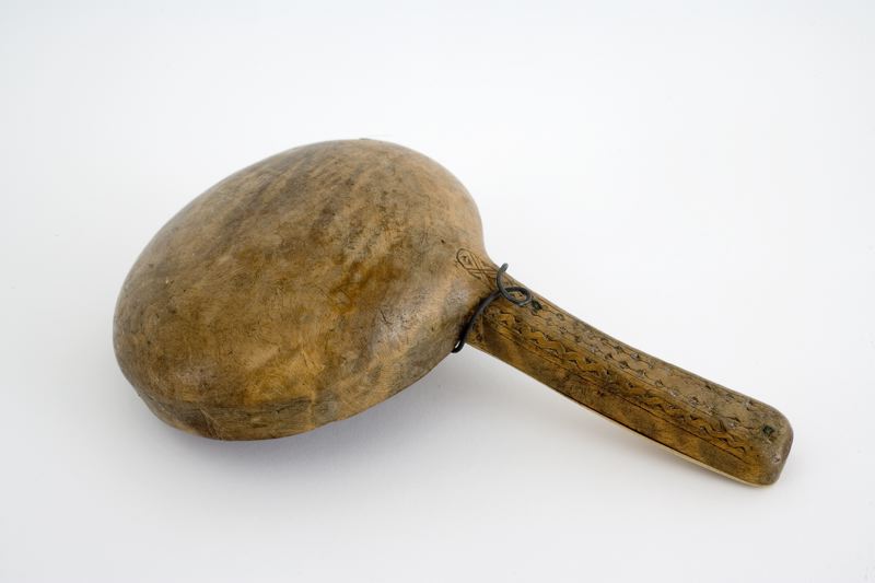 Inköpt i Laidijaur mellan Kvickjock och Stora Sjöfallet i Lule lappmark av dr. Paul Rosenius för museets räkning.