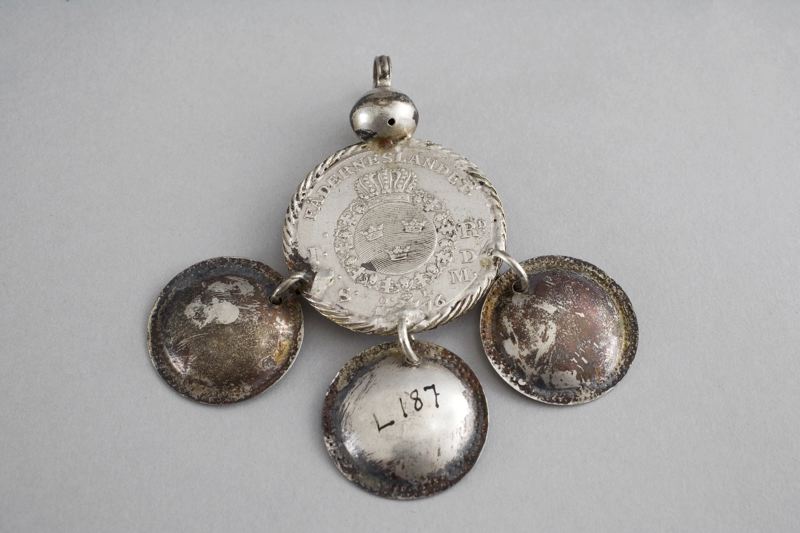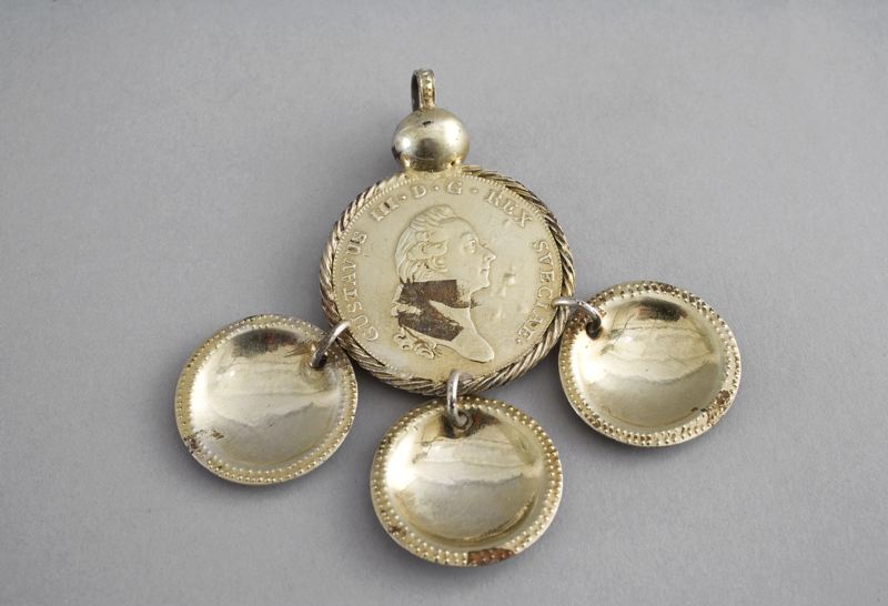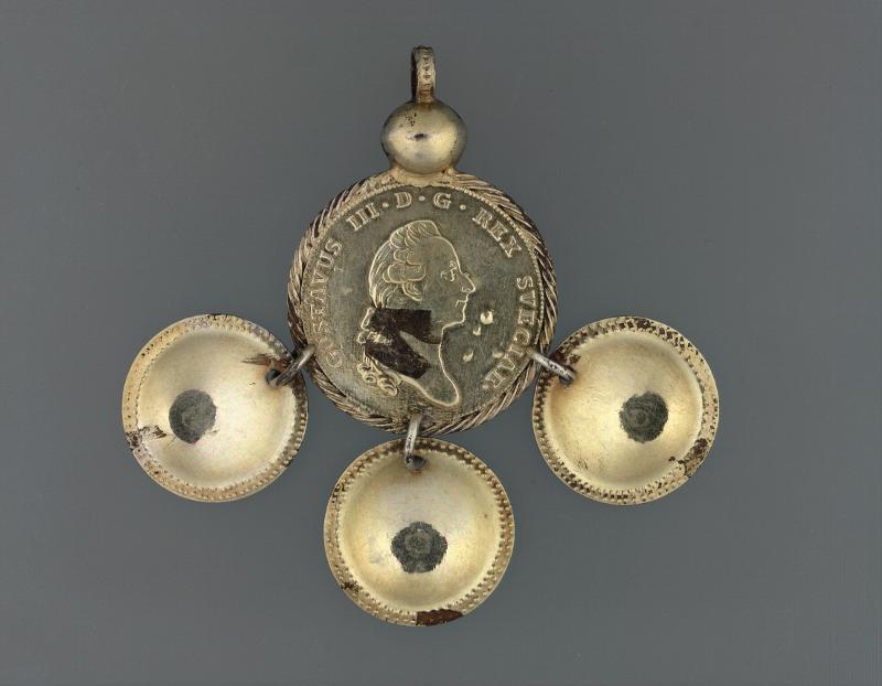 Trillekors av Gustaf III:s 1 Rdr. av år 1776 med tre vidhängande rundablad.