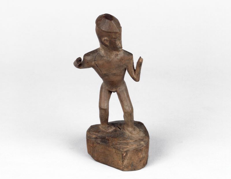 Skulpterad statyett av trä. Utställd på Kommendanten under "Sommarakademin" 31/8 - 4/9 1998. Utställd i "Centrummet" i utställningen "Främmande föremål" 30/10 1998 - 17/1 1999.