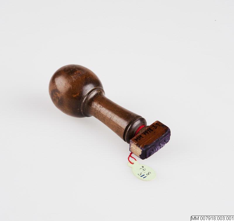 • Stämpel av trä och gummi. På stämpeldynan står "Potatis".