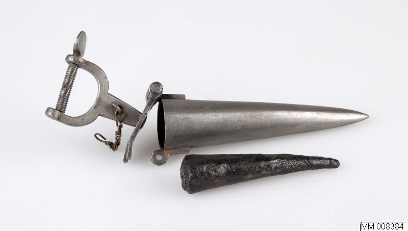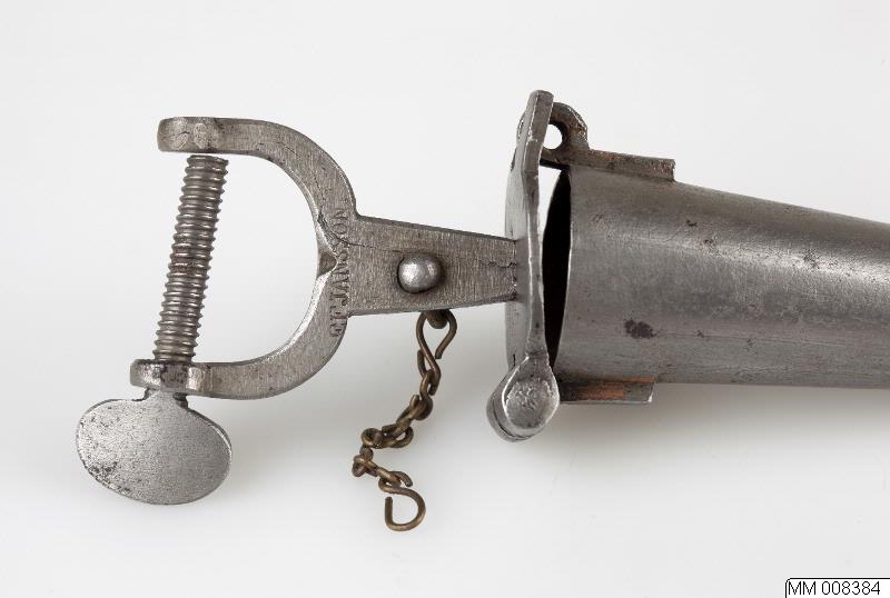• Pipstrykjärn för pipkrås med lod och skruvinrättning. Strykjärnet märkt med texten "EF JANSSON".