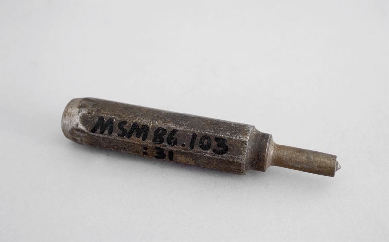 • Försänkare (eller rits?) utan skaft, innehåll från verktygslåda acc.nr. 86.103.