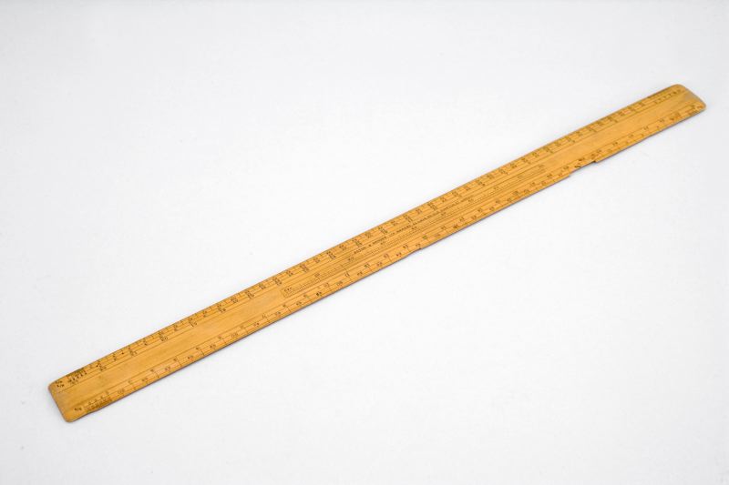Skallinjal av trä från Fartygskonstruktionsavdelningen. :1 Mått; 640x42 mm, skala 1/4, ½, 8/4, 3/8 såväl meter, inch och fot skala. Tillverkare: Aston & Mander Ltd Makers, 61 Late 25 Old Compton St. London. OBS! de är ej märkta individuellt, det vore synd om linjalerna..Detaljbeskrivning - se acc.boken.