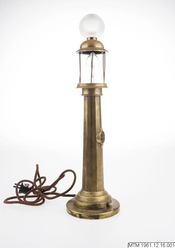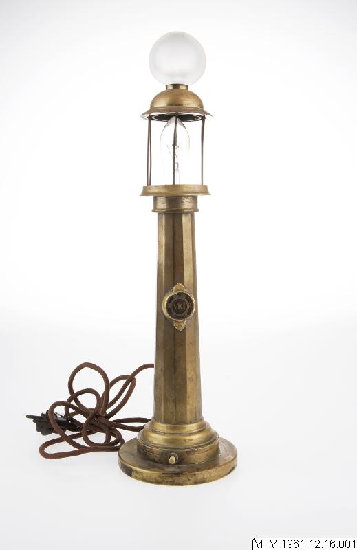 • Bordslampa av mässing. Elektrisk. I form av en bensinpump av märket Vici. Vicipumpar tillverkades av AB Ljungmans Verkstäder i Limhamn.