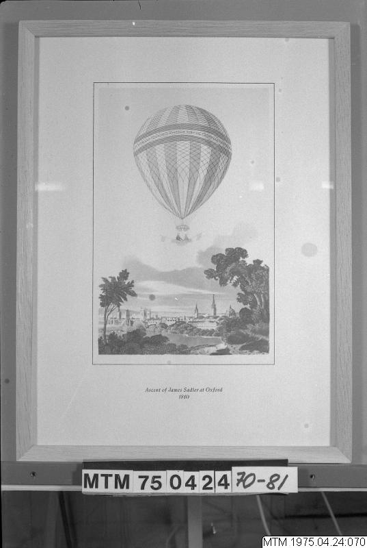 • Nytryck av äldre litografiskt tryck som ingår i en serie bilder på temat varmluftsballonger.