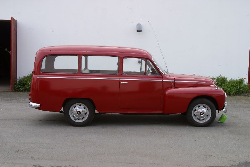 Personbil, Volvo Duett. Registreringsnummer: DWD 910. Den hämtades till museet mars 1990. Renoverad senare samma år i Toarp . Bilen är omlackerad. Tillverkningsår: 1967. Motor: fyrcylindrig toppventil motor, 75 hk.Växellåda: fyra växlar framå. Vikt: 1200 kg. Maxfart: ca 135 km/tim. Med bilradio i instrumentpanelen.