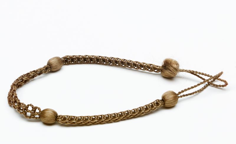 Arbetat av ljustbrunt hår i tre länkar, sammanhållna och avslutade av