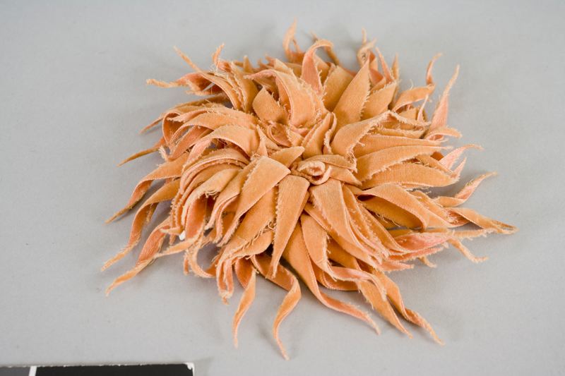 Sydd av snedklippta gulskära sammetsband.* Gift 1915 med Ernst Fischer f 1890.