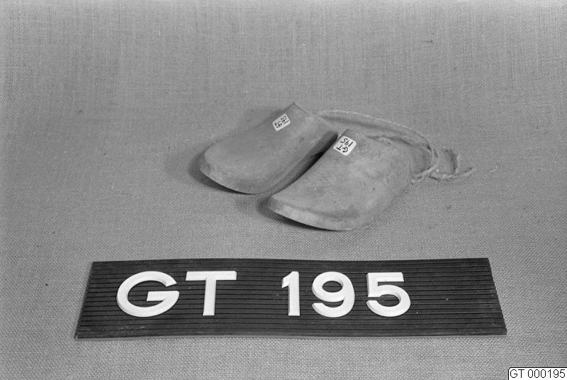 • 1 par läster av trä för tillverkning av ovanläder till trätofflor.