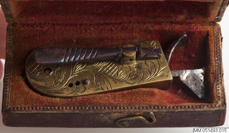 har använta av fältskär Karl Fredrik Ferdinand Sauer.Gåva 1954 av fru Ida Sauer, Malmö.