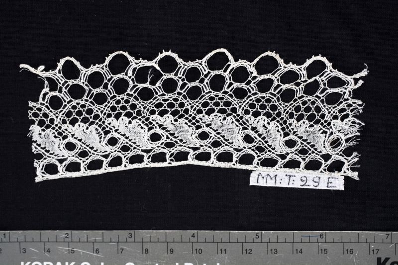 • Spetsprov, knypplad av vitt lingarn, Tönderknyppling, Danmark.