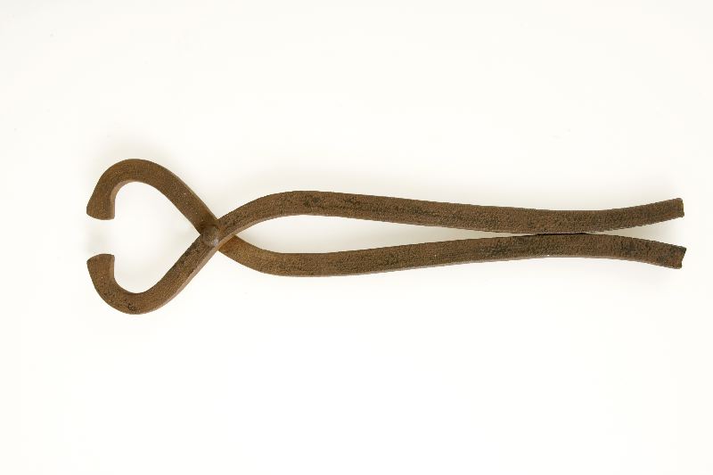 Smedtång av jämbreda, smala bandjärn. Handtagen något utsvängda. Griptängerna något bredare framtill.Har varit utställd i Vagnmuseet till 2005.
