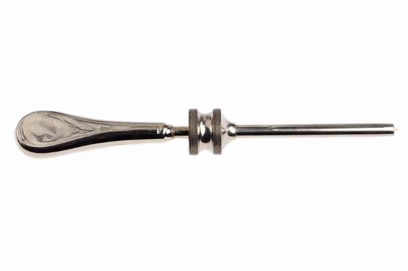• MS 3295. Trokar. L 190 mm. Stål, blank, märkt "Kifa", lu.mott. Platt skaft, päronformat (nästan). Lös hylsa, L 10,3 cm, med refflat grepp.