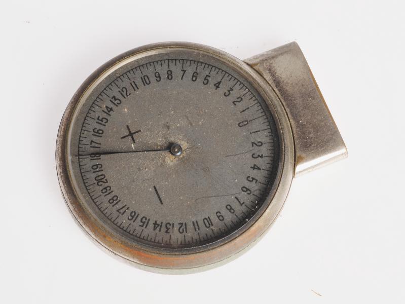 H 5438. Sfärometer. Av metall och glas. Graderad +/- 20 dptr. Diam 49 mm H 56 mm.